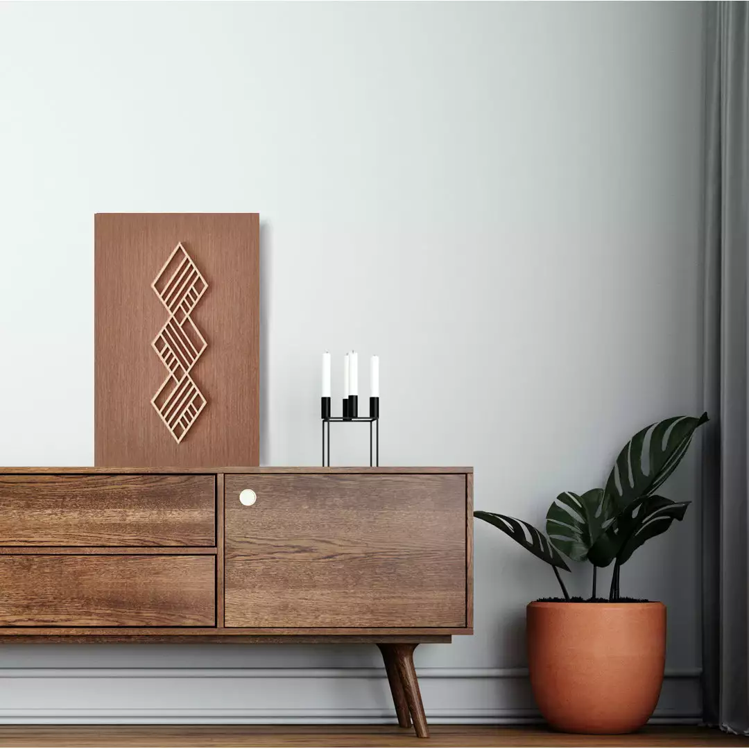 Koivuiset Boho Vinouma -sisustustaulu on kotimainen ja tyylikäs taulu, jonka kolmiulotteinen rimakuviointi luo sisustukseen syvyyttä ja harmoniaa. Taulun pintaan kiinnitetty koivuvanerista valmistettu vino himmelikuvio tuo tauluun modernia ja graafista ilmettä. Taulun upeat yksityiskohdat sopivat hyvin esimerkiksi skandinaaviseen tai moderniin sisustukseen. Yhdistämällä rohkeasti eri värisiä tauluja rinnakkain voit luoda näyttäviä kokonaisuuksia isommallekin seinälle!