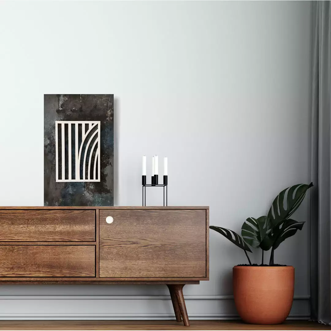 Koivuiset Taipuva metsä -sisustustaulu on kotimainen tyylikäs sisustuselementti, jonka kolmiulotteinen rimakuviointi luo sisustukseen syvyyttä ja harmoniaa. Taulun pintaan kiinnitetty kolmiulotteinen taipuvaa metsää ja puunrunkoja kuvaava rimakuviointi tuo tauluun graafista ilmettä. Taulun upeat yksityiskohdat sopivat esimerkiksi moderniin tai skandinaaviseen sisustukseen. Yhdistämällä rohkeasti eri värisiä tauluja rinnakkain voit luoda näyttäviä kokonaisuuksia isommallekin seinälle!
