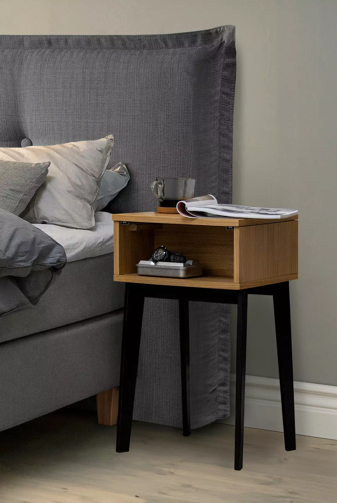 Jensen Charon -yöpöytä täydentää makuuhuoneesi sisustuksen. Se sopii pienempäänkin makuuhuoneeseen viemättä paljoa tilaa. Yöpöydässä on näppärä avolokerikko, josta saa lisää laskutilaa tärkeimmille tavaroille. Näin kaikki tärkeimmät tavarasi ovat käden ulottuvilla yön ajan ja heti herättyäsi.