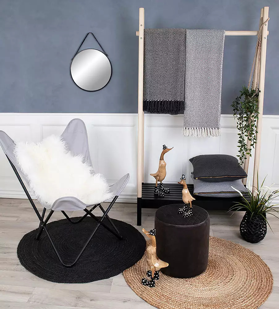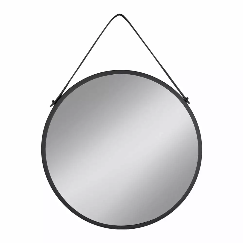 Pyöreä Casa-peili on trendikäs sisustuselementti. Mustaksi maalattu teräspeili ripustetaan seinälle PU-keinonahkaisesta ripustuslenkistä. Sisustuspeili voi olla käyttöesine, koriste tai molempia samaan aikaan.