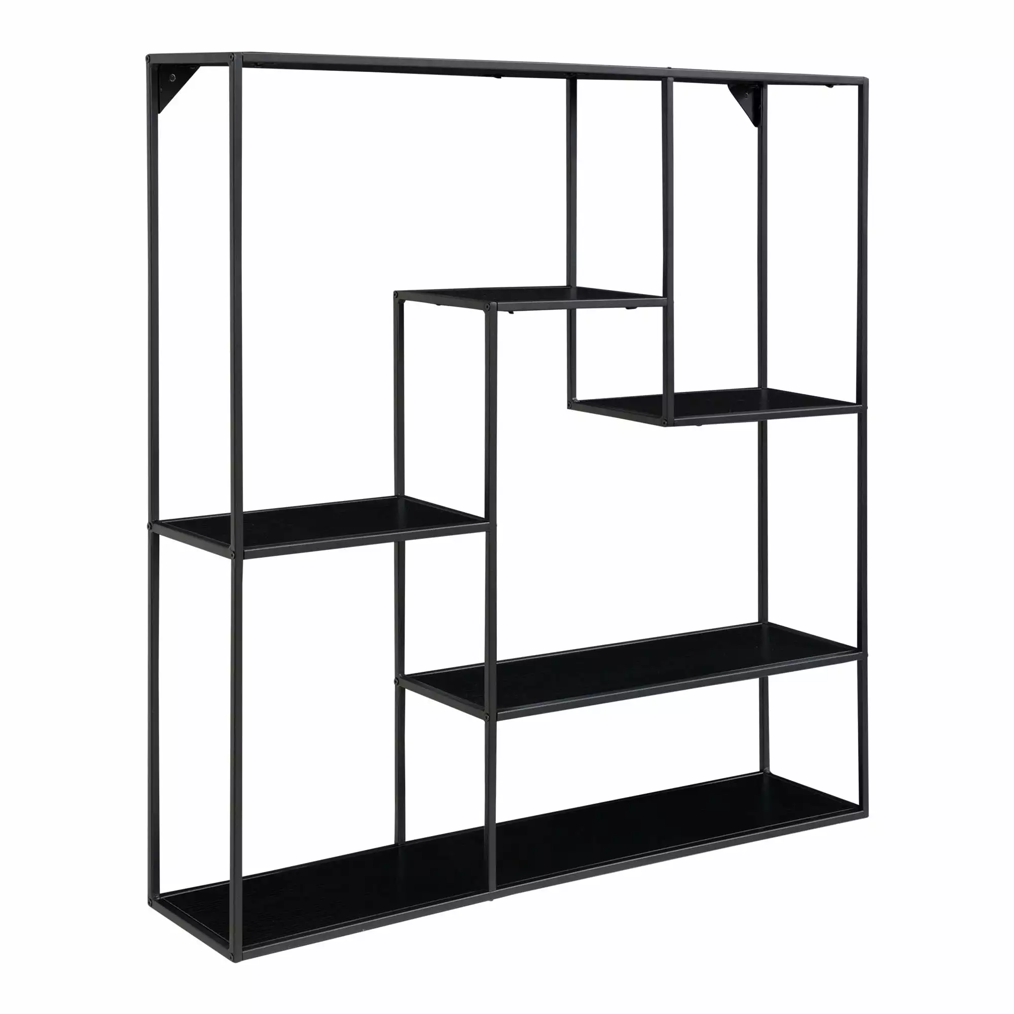Avohyllyn kapea runko antaa sille hyvin keveän ilmeen. Hyllytasot ovat valinnan mukaisesti tammenväristä tai mustaa huonekalulevyä ja runko on mustaksi maalattua metallia.
