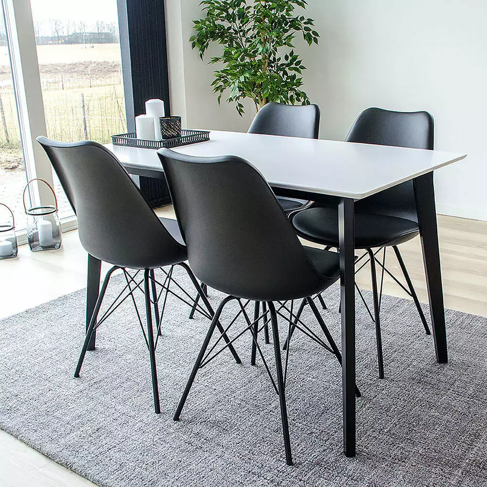 Rimini-ruokapöytä tuo ruokailutilan sisustukseesi keveyttä ja ilmavuutta. Pöydässä on ohut kansilevy ja vinot jalat, jotka tuovat muotoiluun nostalgisia vaikutteita ja menneiden aikojen tunnelmaa. Upean kokonaisuuden saat yhdistämällä Rimini-pöytään esimerkiksi matalaselkäiset kuppituolit. Pöydän ääreen mahtuu ruokailemaan neljä henkilöä.
