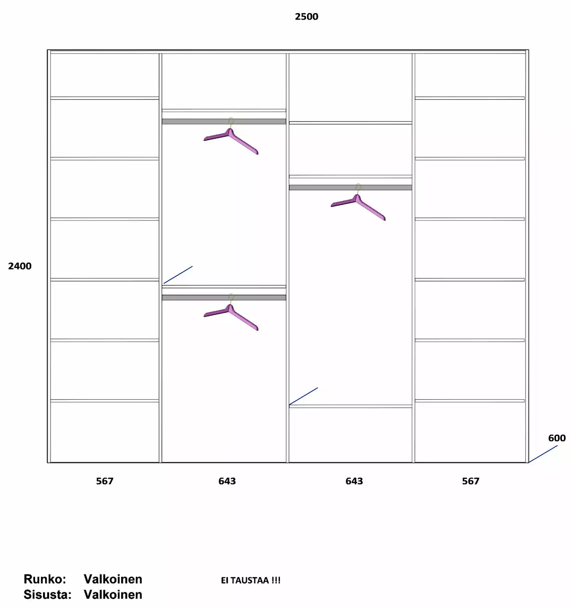 Lakeus Design Oy LAKEUS DESIGN Liukuovikaappi Mittatilauksena 250 X 60 X 240 Cm