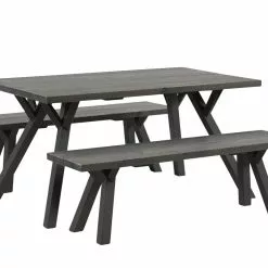 Vilbel Ou VENLA 4 Hengen Penkkiryhmä Lankkupöydällä Ja Puujaloilla