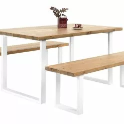 Vilbel Ou VENLA 4 Hengen Penkkiryhmä Lankkupöydällä Ja Suorilla Metallijaloilla