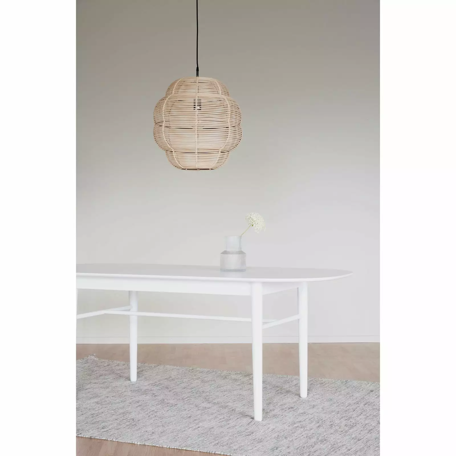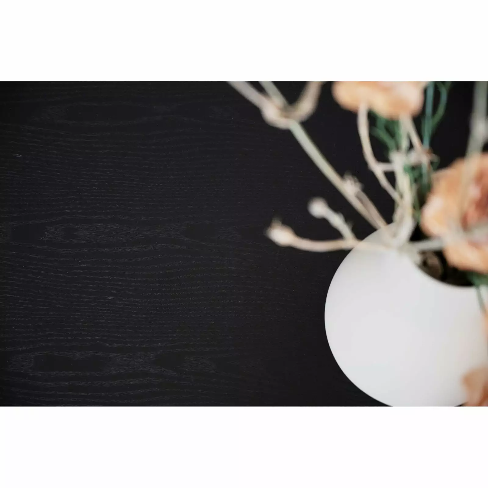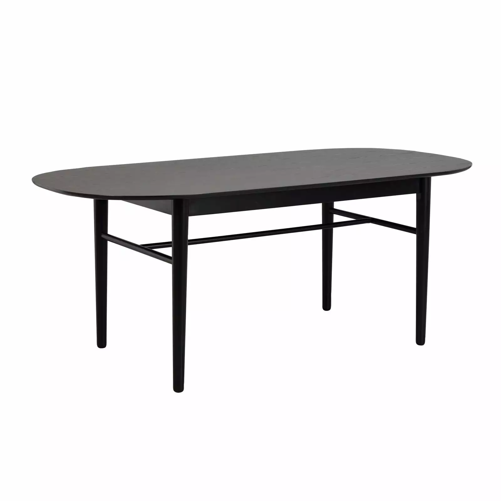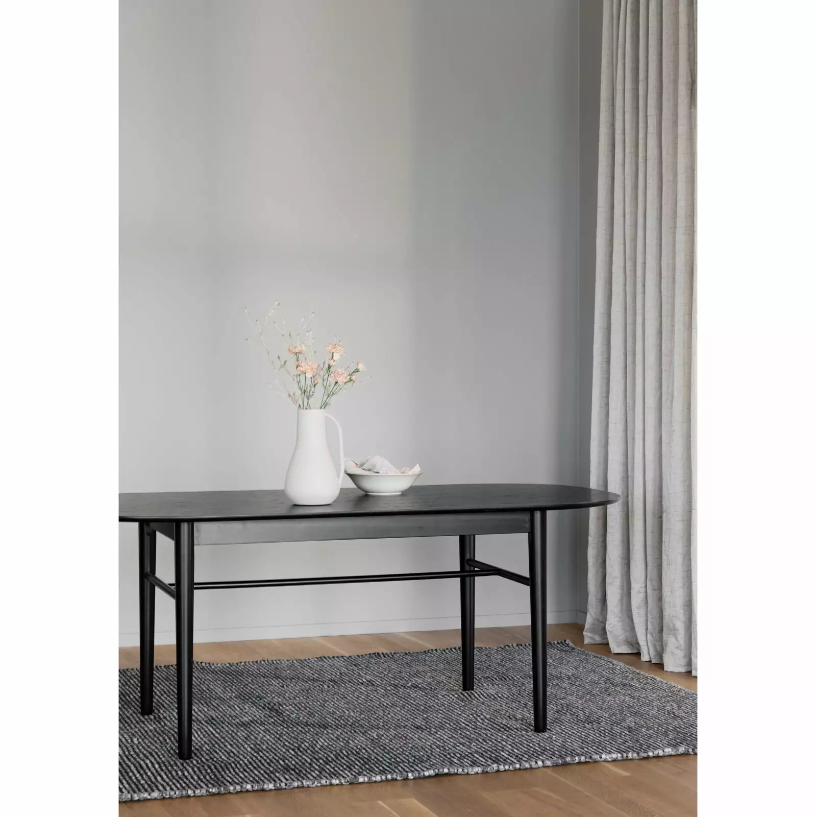 Ovaalinmuotoinen Akita-ruokapöytä luo ruokailutilaasi yksinkertaista tyylikkyyttä. Pöydän kansi on viilutettua puulevyä, joka tuo puun syyt kauniisti esille luoden pinnasta eläväisen näköisen.