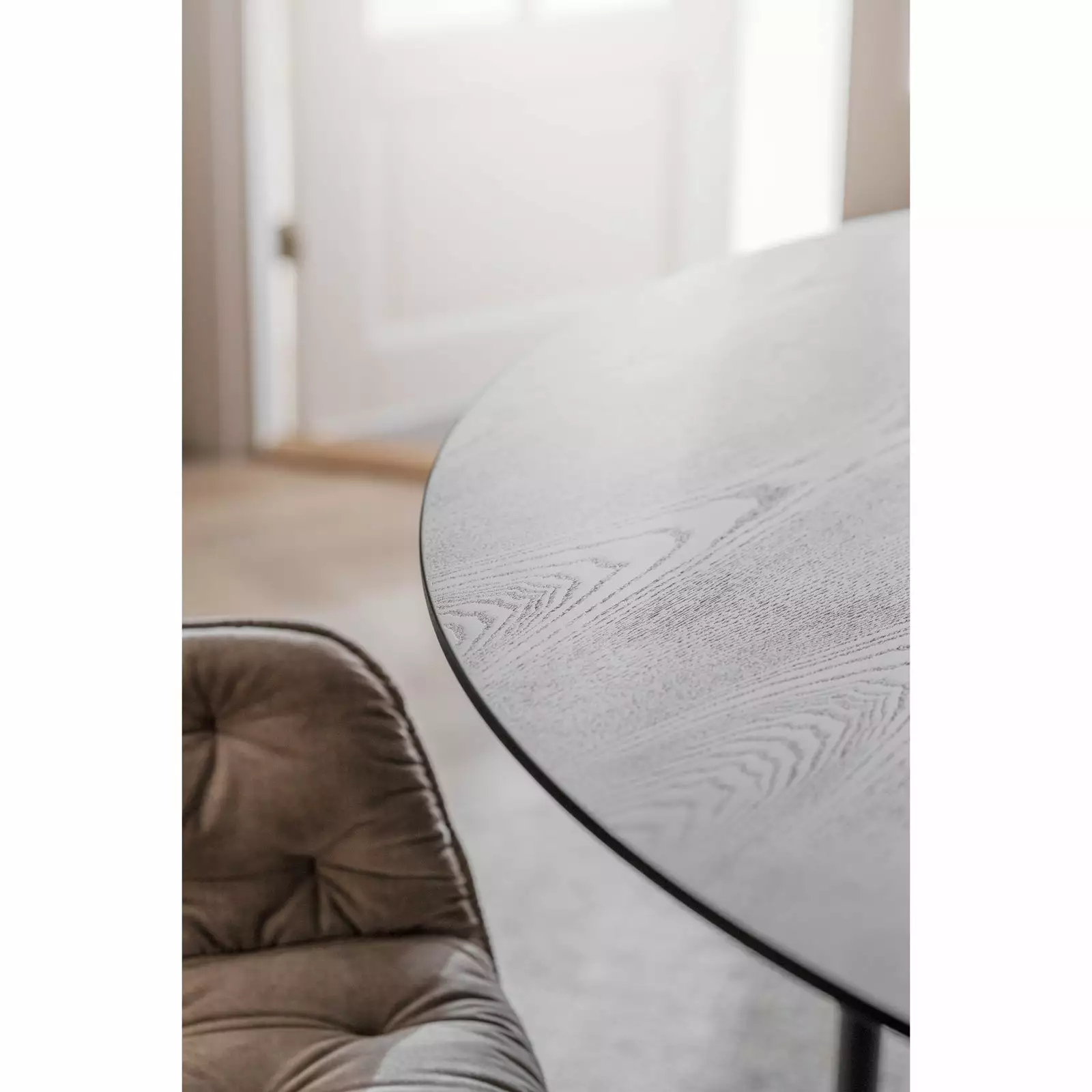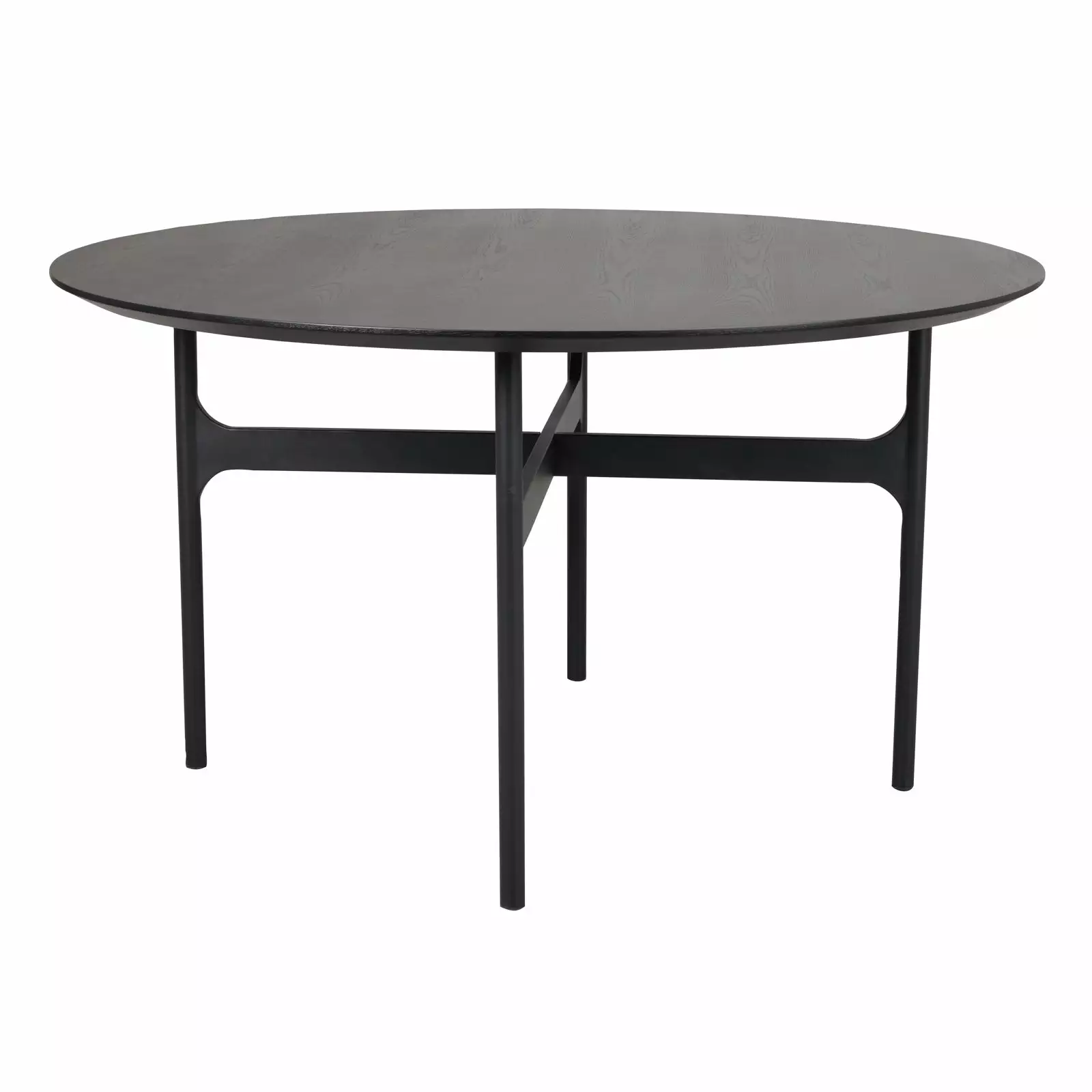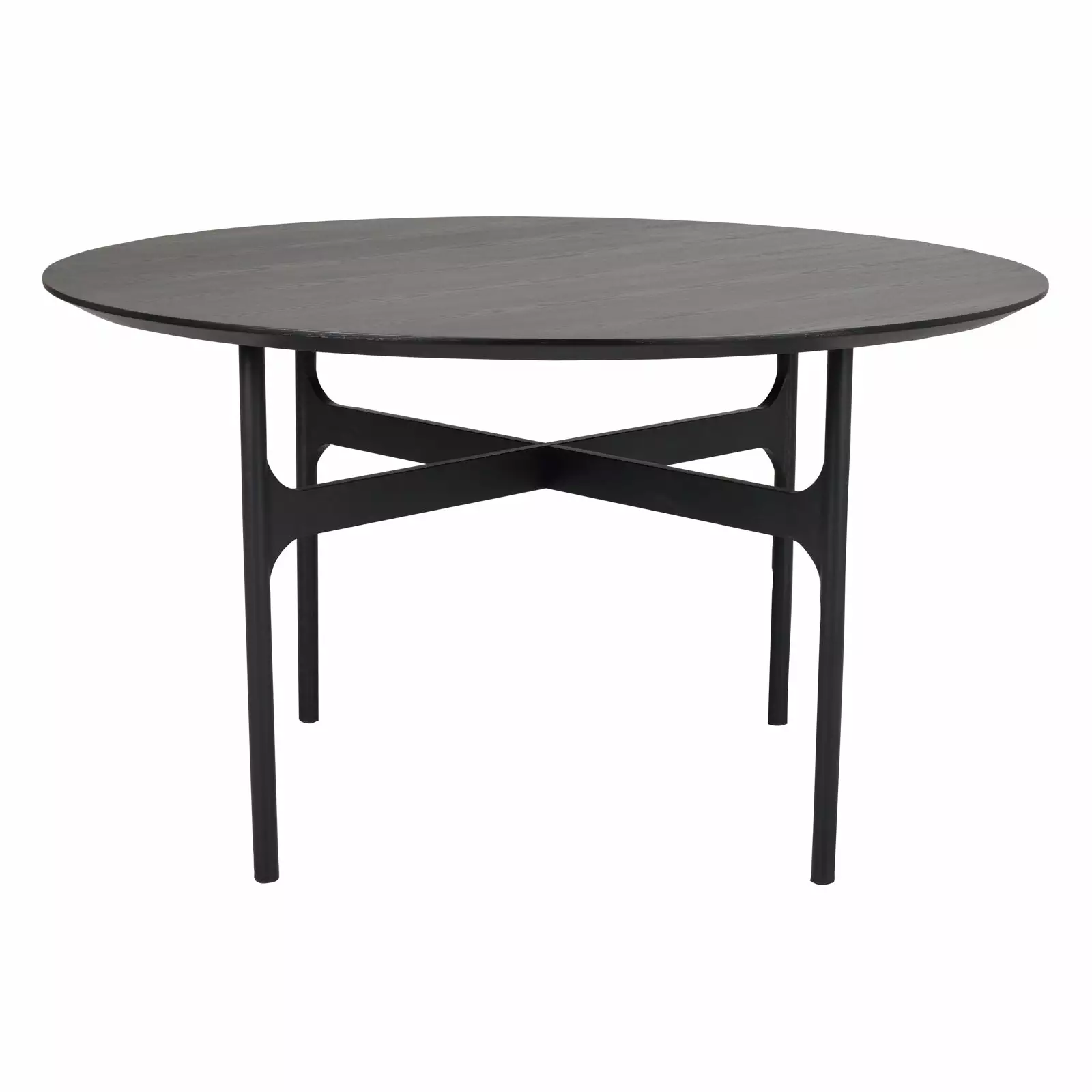 Colton-ruokapöydässä on musta viilutettu pöytälevy, joka tekee pöydän pinnasta eläväisen. Pöydän mustat metallijalat viimeistelevät tyylikkään kokonaisuuden. Ruokapöydän halkaisija on 135 cm, joten pöydän ääreen mahtuu helposti useampikin ruokailija.