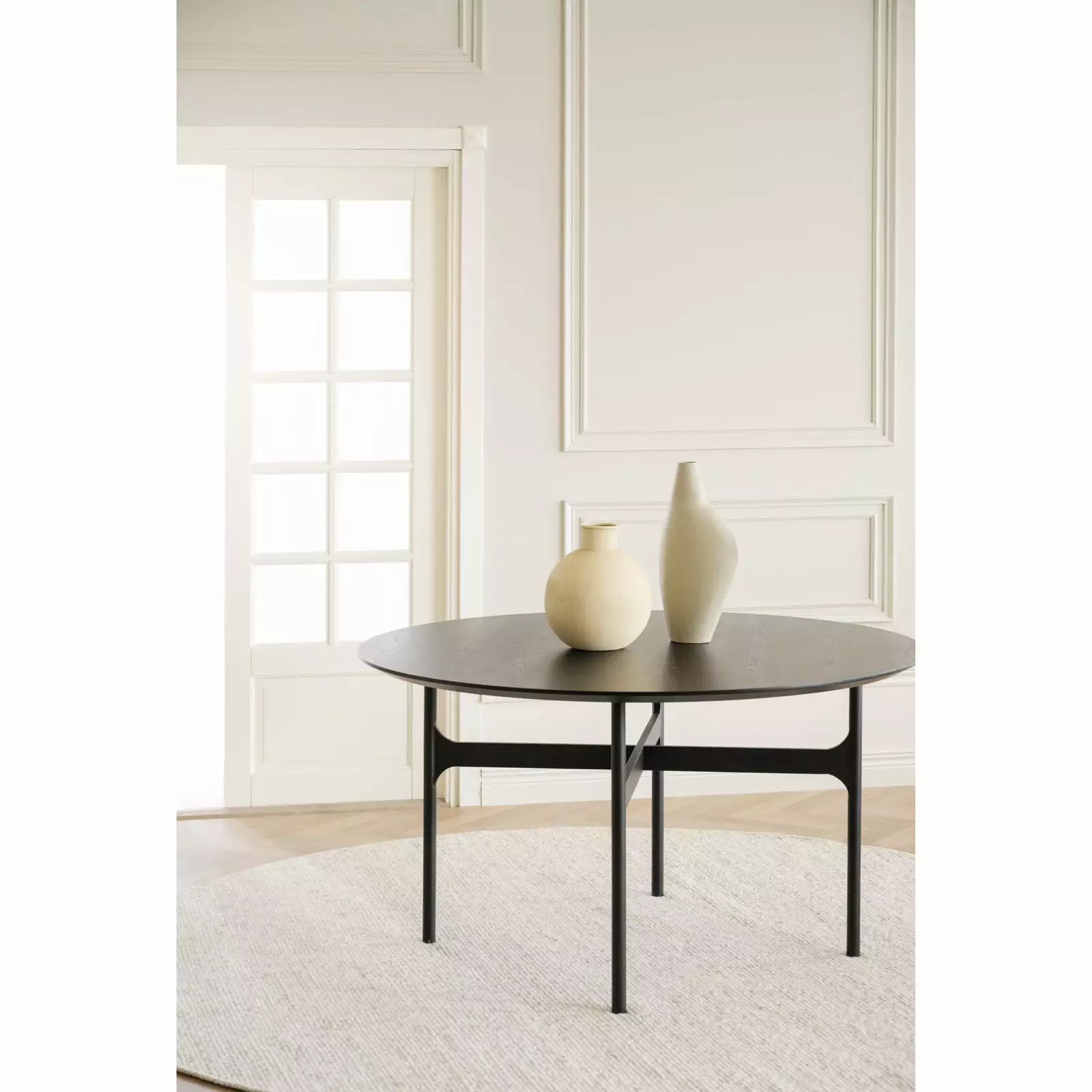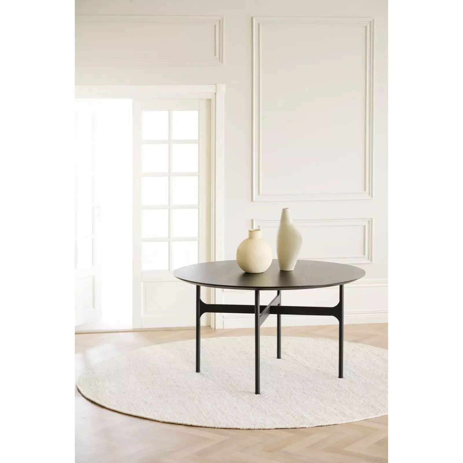 Laadukkaassa Colton-sohvapöydässä näkyy pohjoismainen tyylikkyys. Korkealaatuinen pyöreä pöytälevy on mustaksi lakattua saarniviilua, missä näkyy puun oma kuviointi. Sohvapöydän pyöreä muoto antaa pehmeän vaikutelman ja sopii täydellisesti pienemmän sohvan eteen tai sivupöydäksi. Ohuet ja sirot metallijalat keventävät pyöreän pöydän ilmettä.