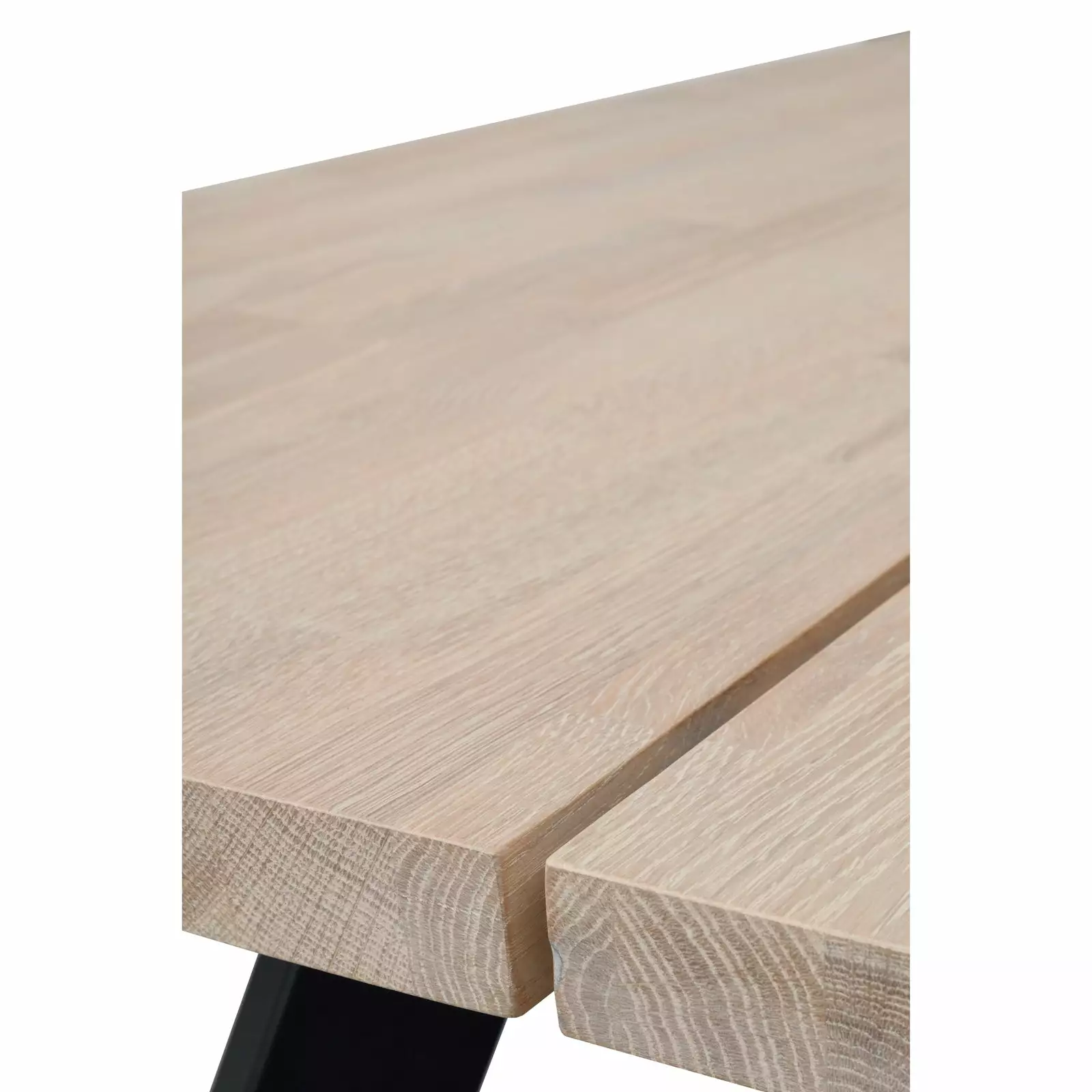 Fred-ruokapöytä on laadukasta ja kestävää massiivitammea. Pöytä on saatavilla kahdessa eri värissä ja kahdessa eri koossa. Fred-pöydän mustat metallijalat viimeistelevät näyttävän kokonaisuuden ja takaavat, että pöytä pysyy tukevasti paikallaan. Voit halutessasi vaihdella jalkojen paikkaa, jotta saat omat lempituolisi mahtumaan sujuvasti pöydän äärelle. Valitse omaan ruokailutilaasi sopiva vaihtoehto ja kutsu ystäväsi koolle ihastelemaan!