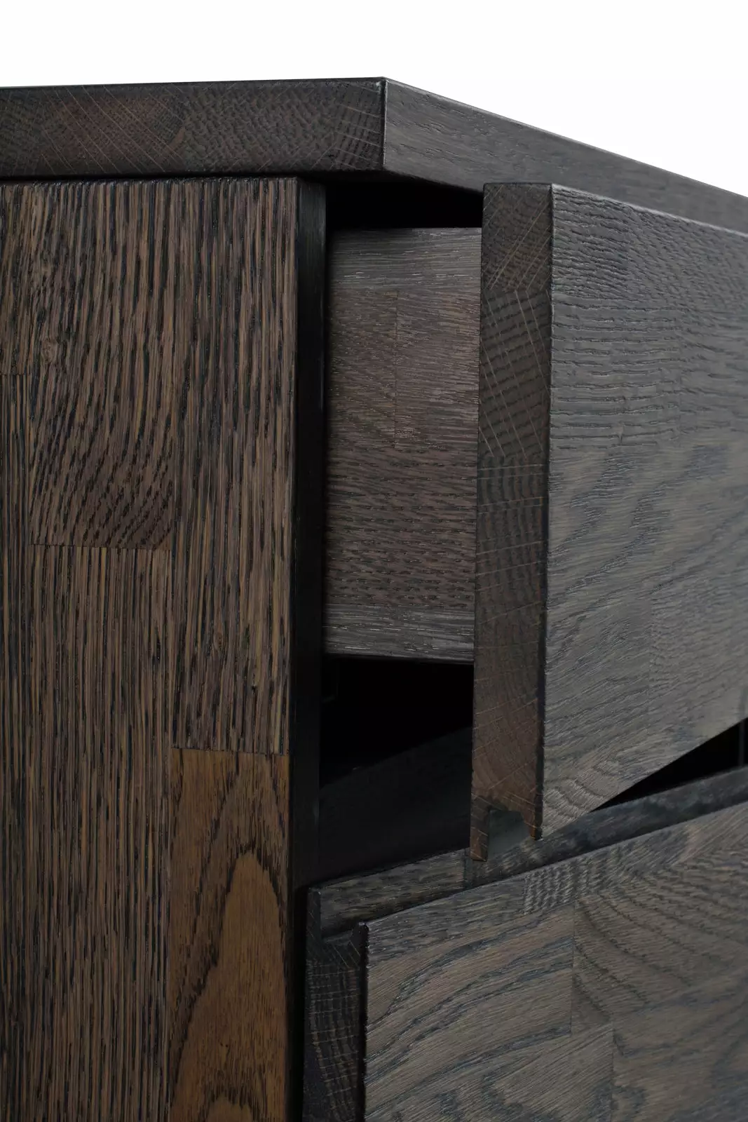 Tyylikäs Fred-senkki on nykyaikaista suoralinjaista muotoilua oleva säilytyskokonaisuus. Näyttävän kokoisen tammikalusteen ohuet viistot jalat antavat ulkoasulle kevyttä ilmettä ja helpottavat siivousta.