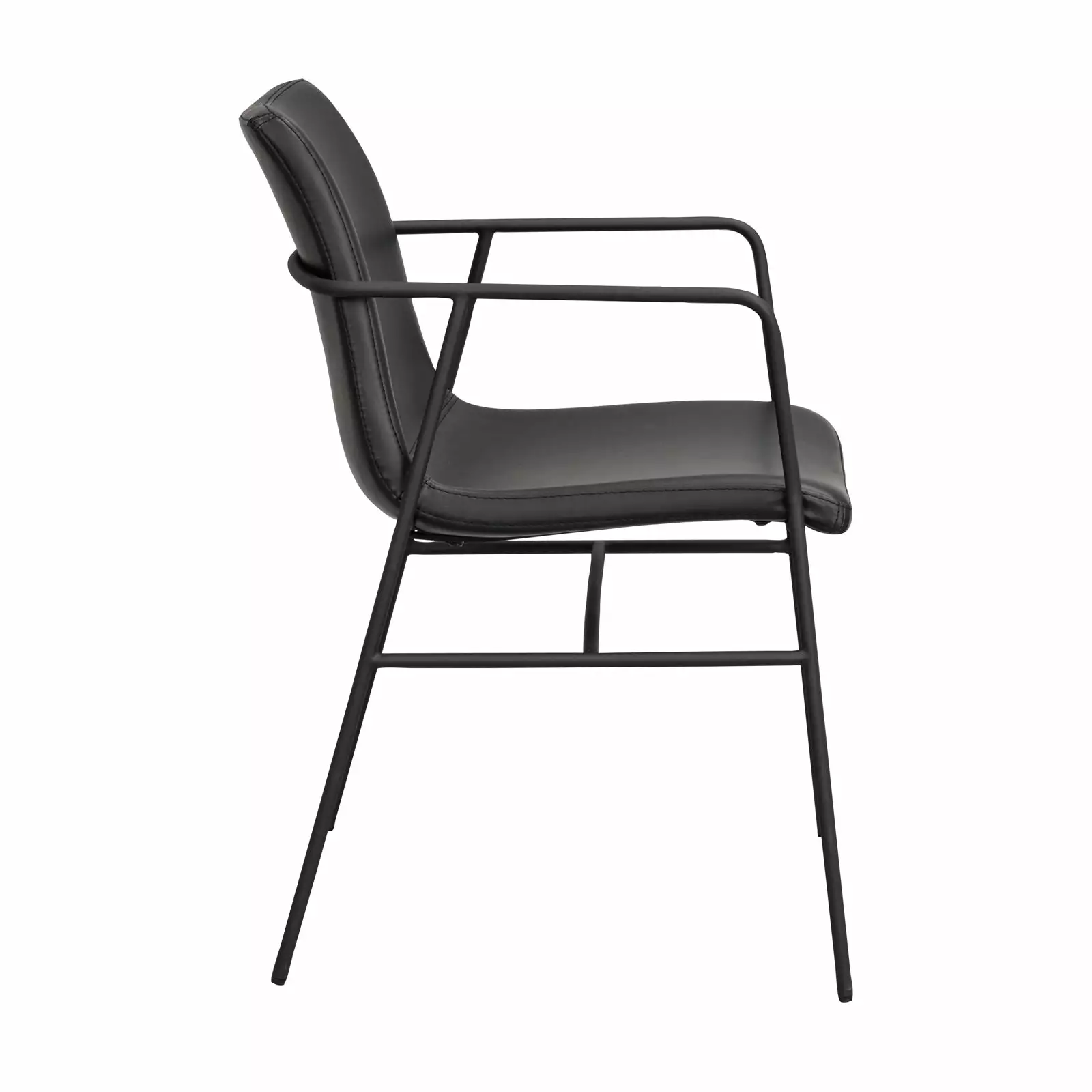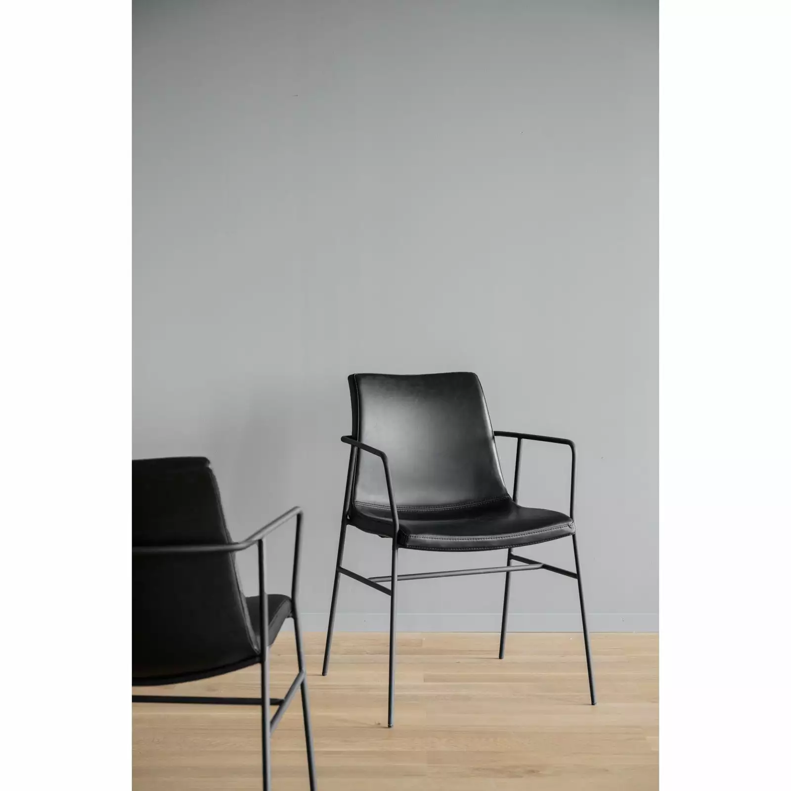 Huntingbay-tuoli on moderni ja linjakas kuppimallinen PU-nahkaverhoiltu ruokatuoli. Käsinojallisen keinonahkatuolin kaunis kiiltävä pinta tuo elävyyttä ruokailutilaan ja se on kaiken lisäksi helppo puhdistaa kostealla rätillä puhtaaksi. Huntingbay-tuolin kevyt ja sulavalinjainen muotokieli ja tekee siitä nykyaikaisen ja sisustuksellisen elementin myös kodin muihin oleskelutiloihin. Tuolin ohuet metallijalat, jotka jatkuvat käsinojiksi, viimeistelevät modernin ja tyylikkään vaikutelman.