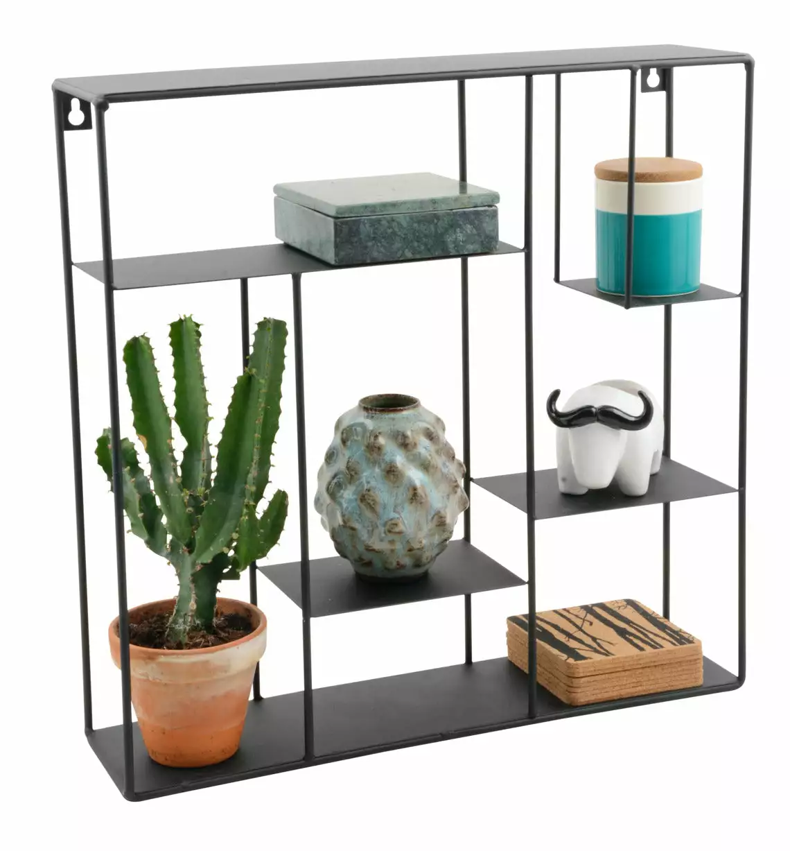 Trendikäs Day-seinähylly on hauska sisustuselementti. Asettele siihen esille pientavarat ja kauneimmat koriste-esineesi. Mustaksi maalatun hyllyn materiaali on metallia.