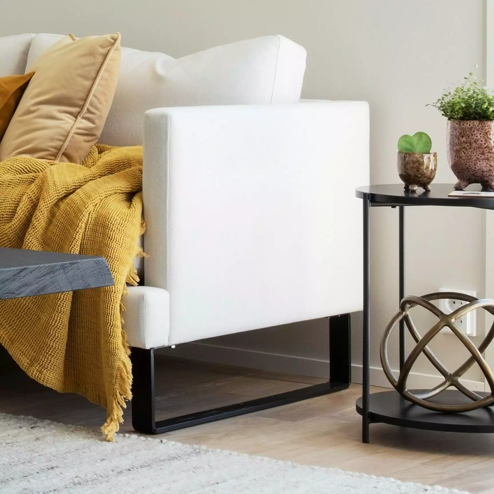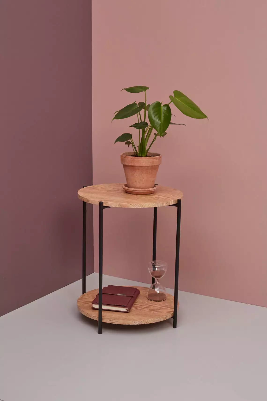 Kaunis ja siro Day-sohvapöytä sopii olohuoneeseen sohvapöydäksi tai kukkapöydäksi sekä makuuhuoneeseen yöpöydäksi. Sitä voi käyttää myös sivupöytänä ja apupöytänä tuomaan lisää laskutilaa huoneeseen. Sohvapöydän ohuet jalat antavat sille keveän ilmeen. Pöydän kansi ja alahylly ovat mdf-huonekalulevyä ja jalat mustaksi maalattua metallia.