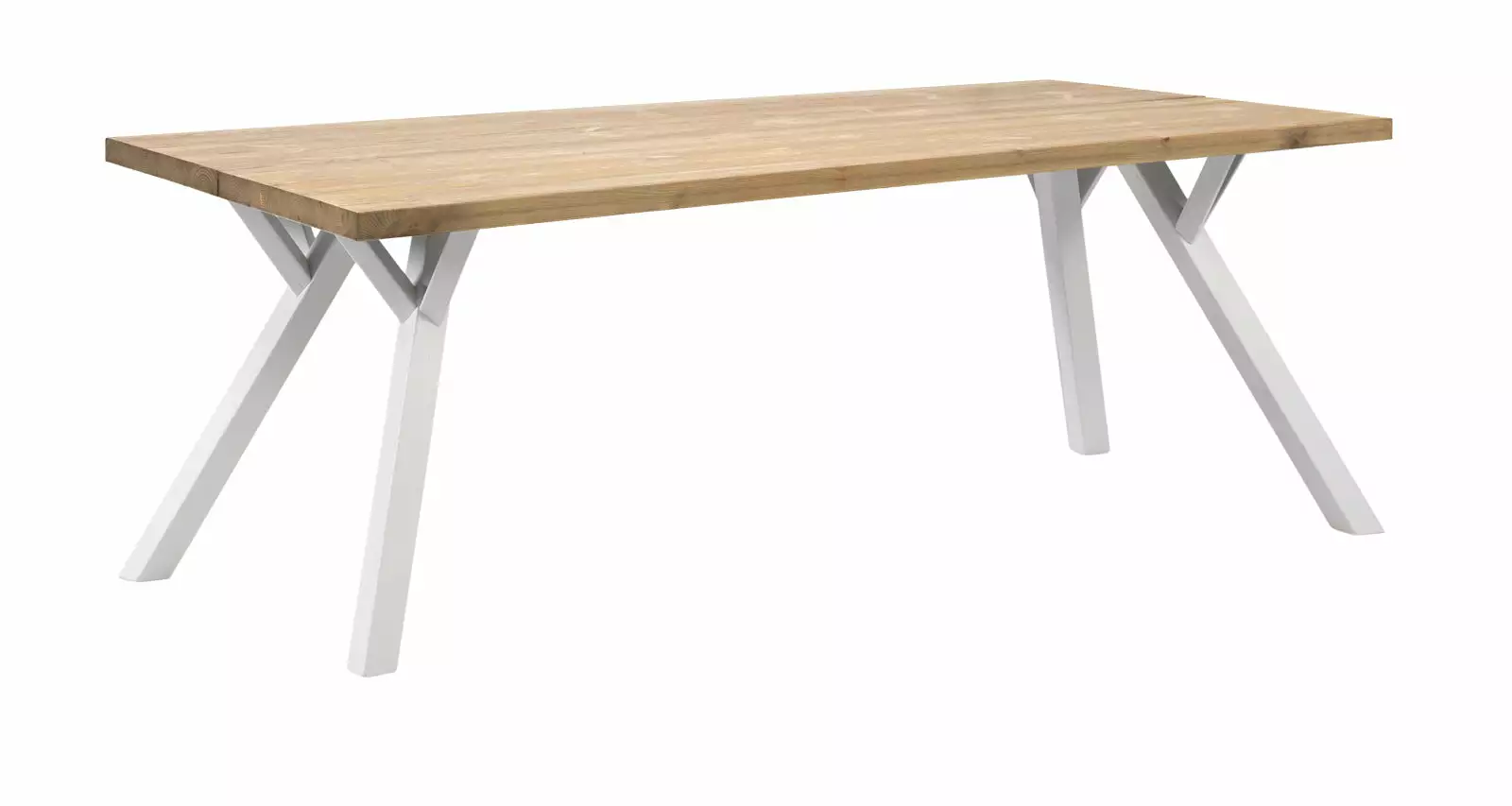 Upea Venla-lankkupöytä on näyttävä ilmestys ja se sopii sekä sisä- että ulkokäyttöön. Monipuolisesta pöydästä saat räätälöityä mieleisesi version valitsemalla kansivärin sekä jalkamallin ja jalkojen värin. Tässä Venla-pöydän mallissa on country-henkiset vinot puujalat. Pöydässä on kahdesta lankusta valmistettu kansi, jonka materiaali on vahattua ja harjattua massiivimäntyä. Viimeistele tyyli valitsemalla ruokailuryhmään saman sarjan penkki tai mieleisesi tuolit Stemman laajasta valikoimasta.